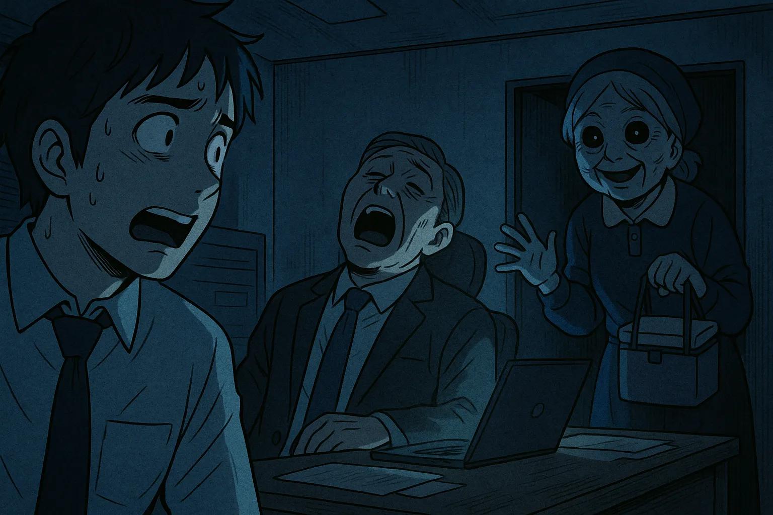 怪談クラブがお届けする、夜の会社に現れる謎の「ドリンクおばさん」の怪談。不気味な飲み物を売る彼女と関わったことで、同僚は恐ろしい出来事を経験する。