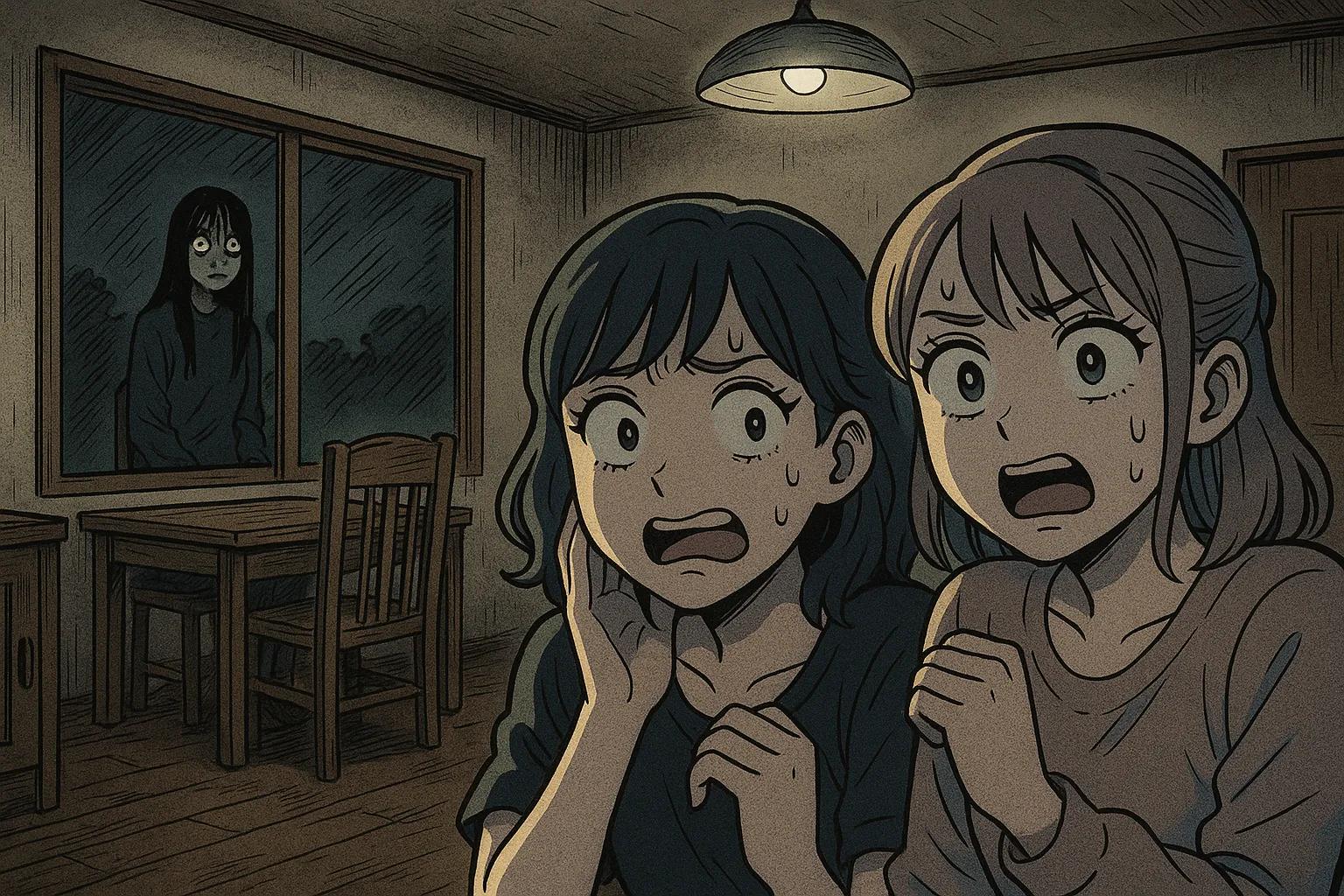 友人の紹介で、古い一軒家のシェアハウスに引っ越した私。家賃は安かったが、夜中に勝手に水道が出たり、壁から音がしたりと奇妙な現象が続いていた。同居人の中に、ほとんど喋らず、夜中に不気味な行動をするC子という子がいた。ある日、窓ガラスに映ったC子の姿は、机に座っているはずのC子とは違う、目を見開いて立っているC子だった…。