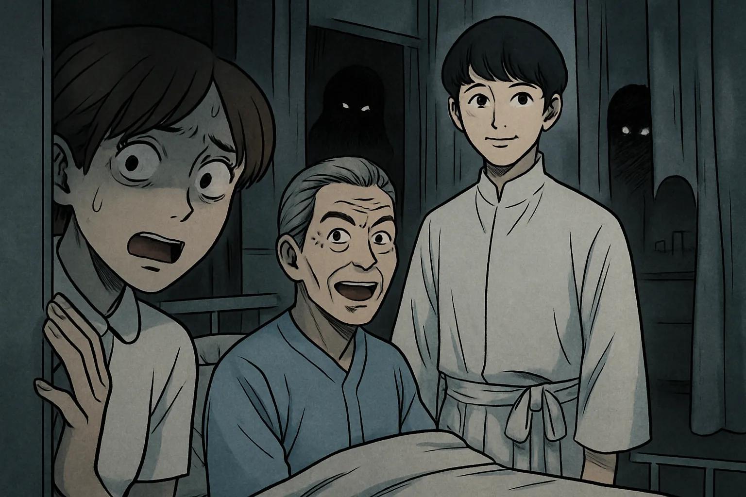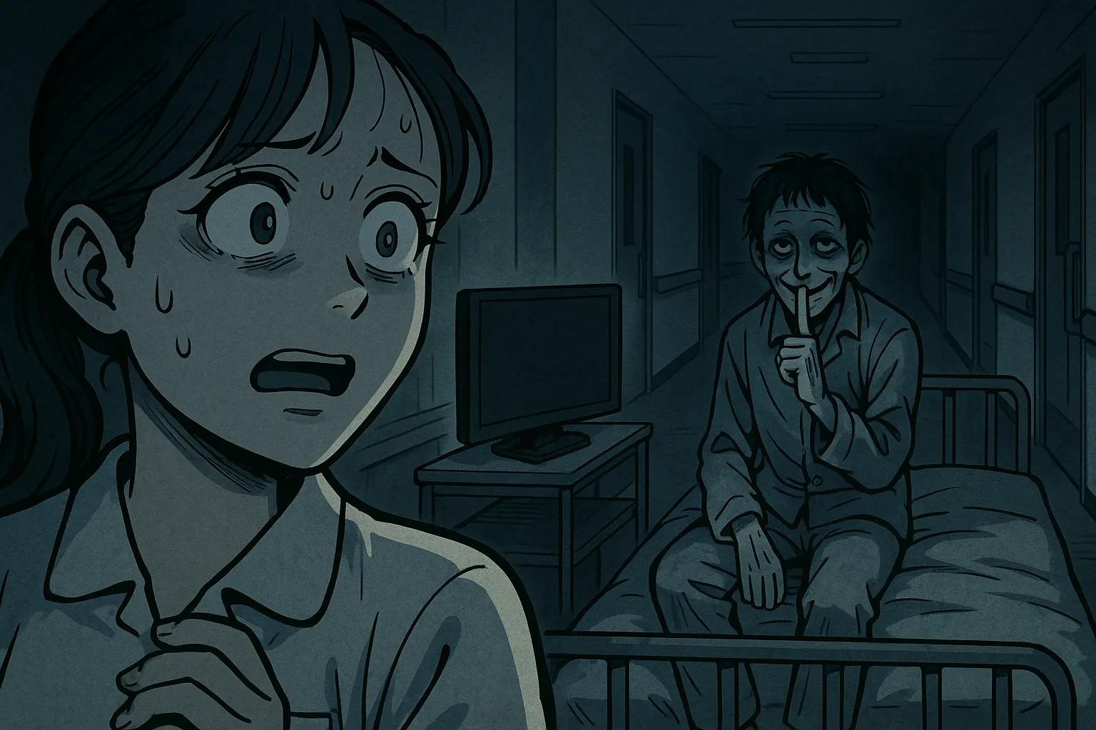怪談クラブがお届けする病院での不気味な体験談。面会後に迷い込んだ無人階で響く声と迫り来る影。静まり返った病棟の奥に潜むものの正体とは。