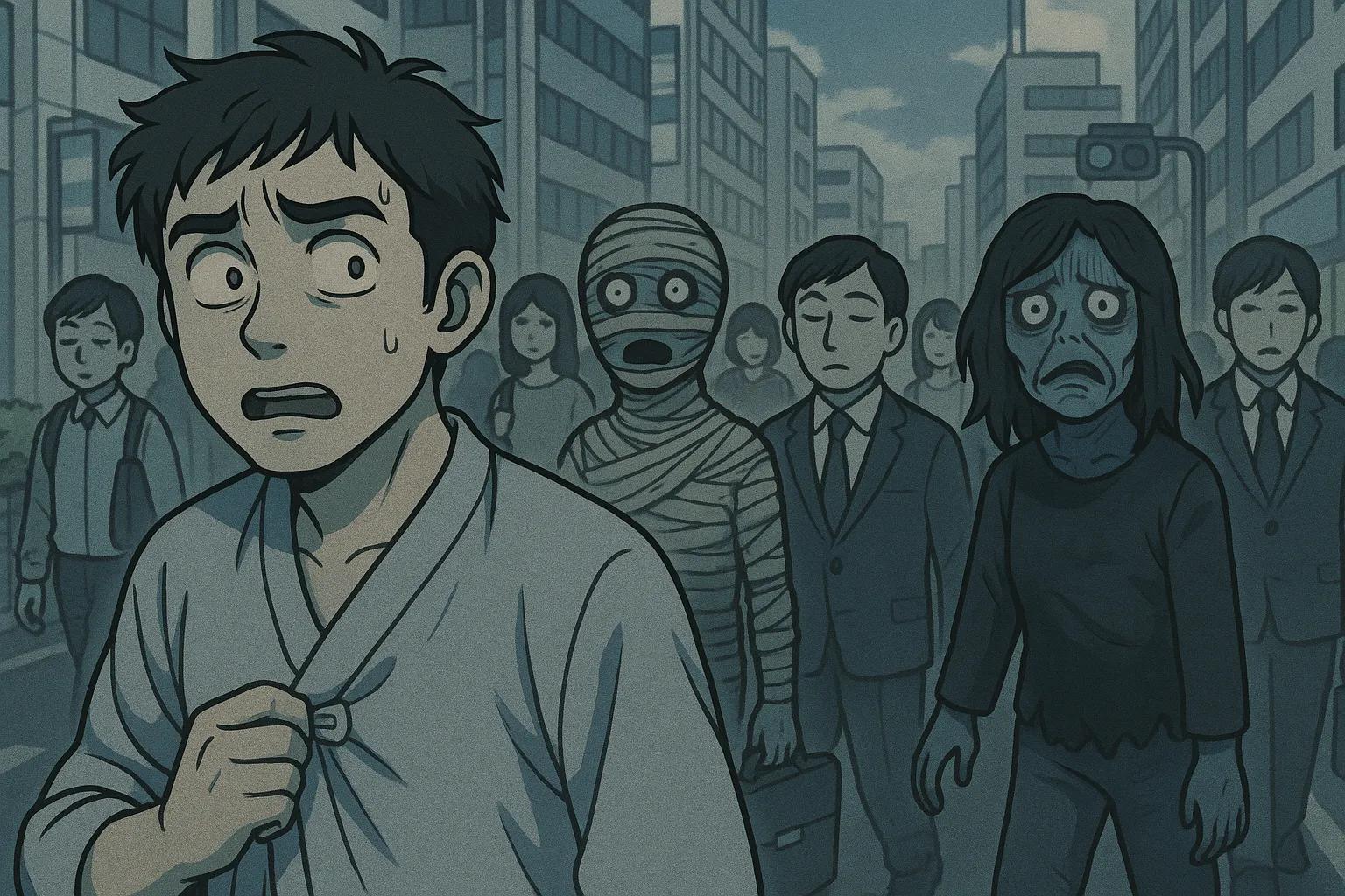 会社の健康診断で訪れた医院は、今年は様子がおかしかった。薄暗い待合室、不気味に笑う受付、怪我だらけの患者たち。診察室に通された俺は「すぐ手術」と告げられ、意識を失う。次に目覚めた時、そこはいつもの医院だったが…。それ以来、俺だけが街中に紛れる「人間じゃないもの」が見えるようになってしまう。
